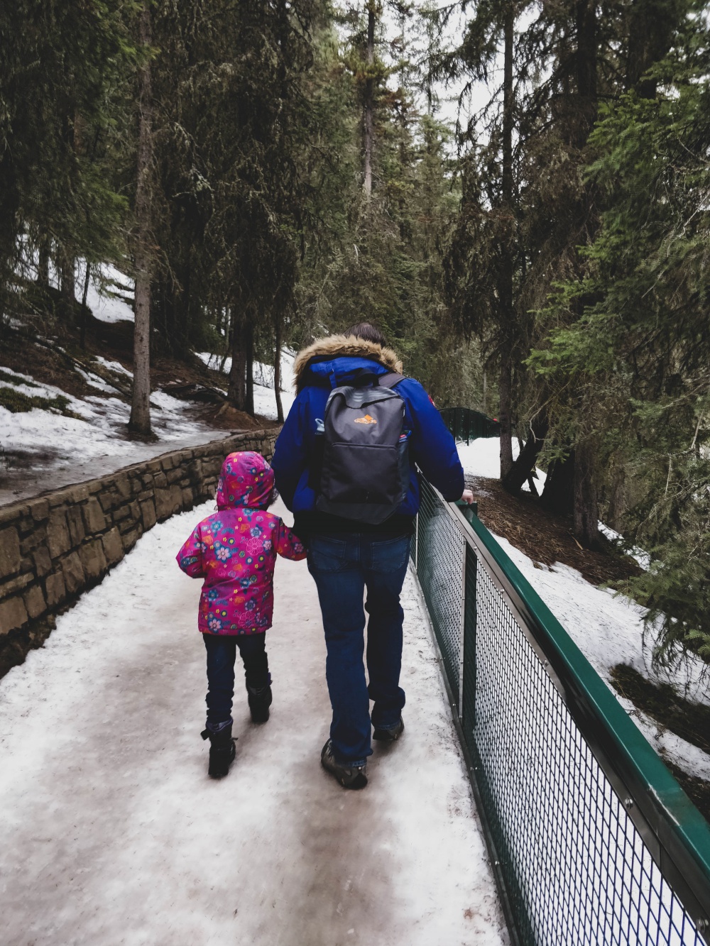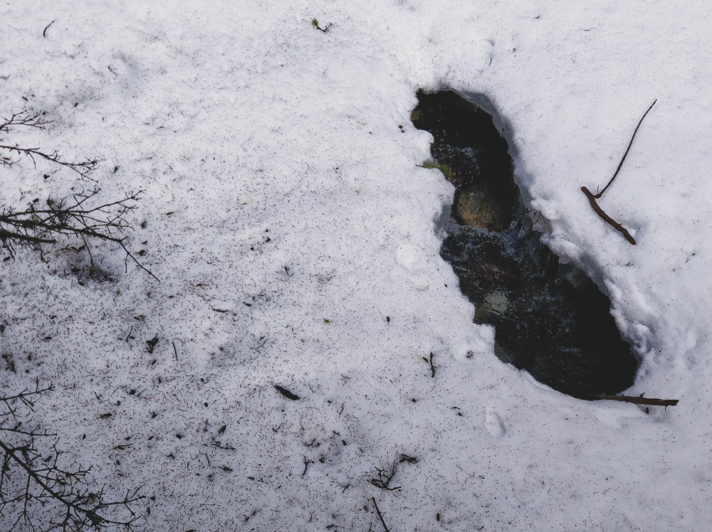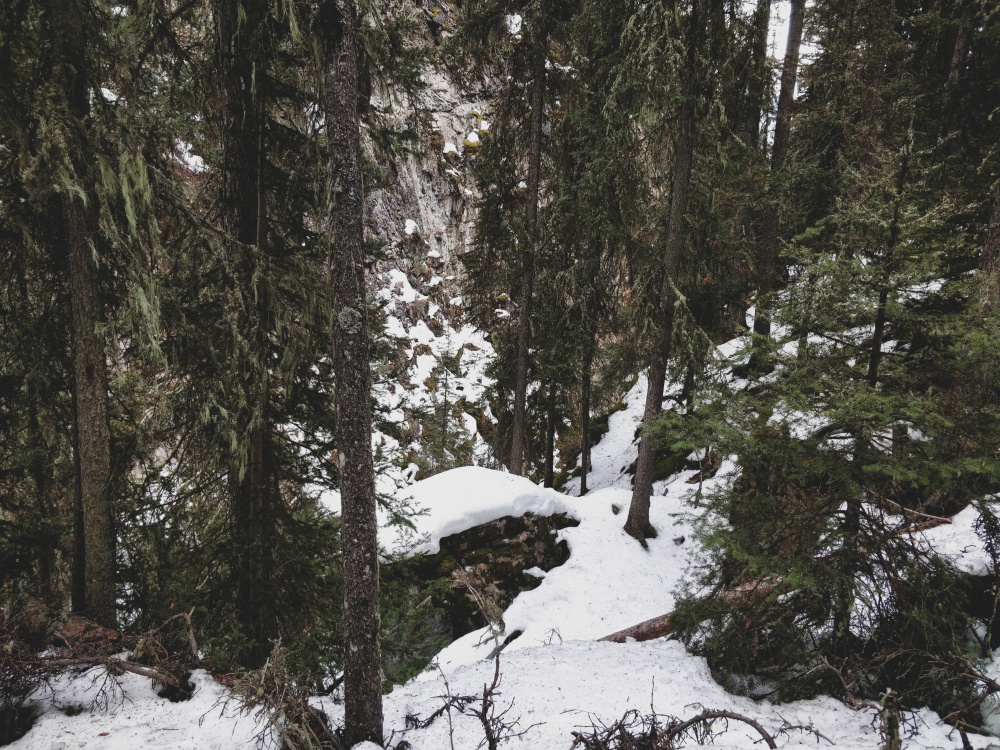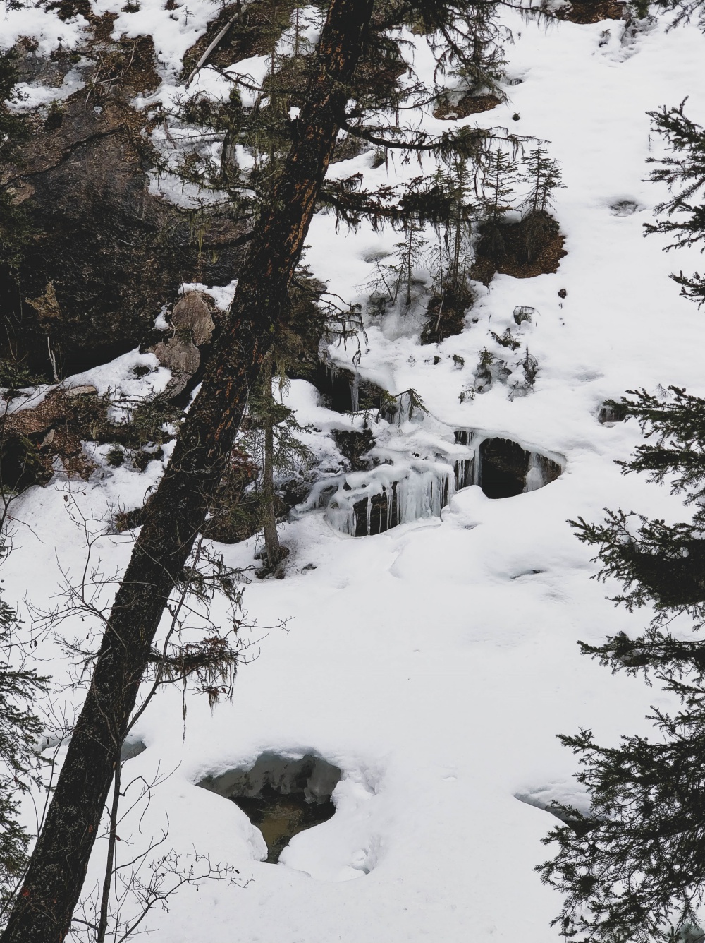 We miscalculated a little. Who’d have thought the pathways would still be slick with ice now that it’s supposed to be spring? Obviously not us. And since we don’t yet own spikes for our shoes, we couldn’t complete the walk to the Ink Pots. Meh.