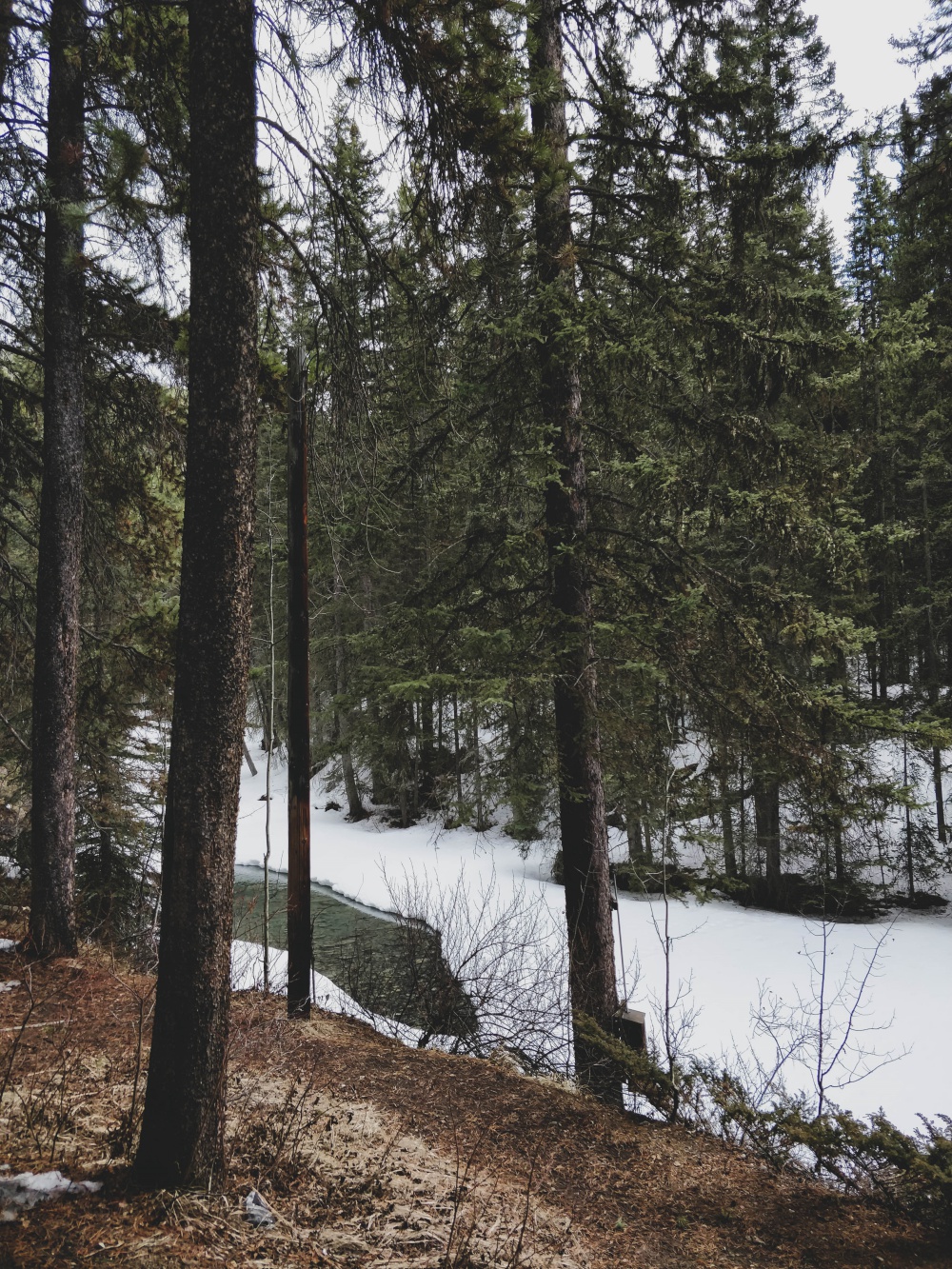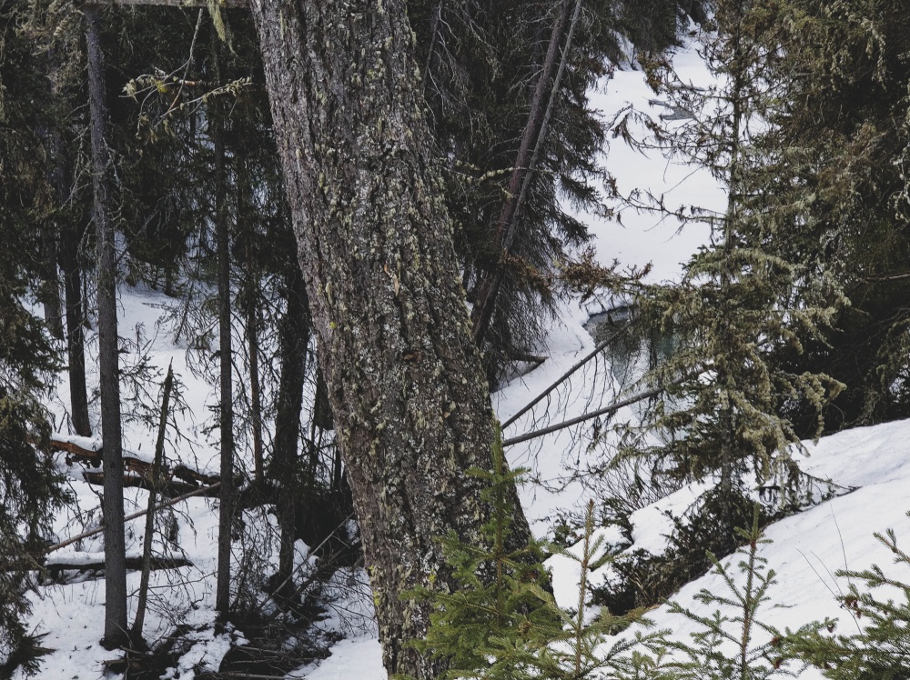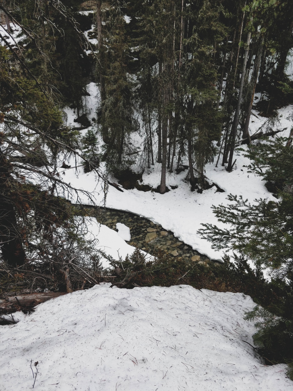We miscalculated a little. Who’d have thought the pathways would still be slick with ice now that it’s supposed to be spring? Obviously not us. And since we don’t yet own spikes for our shoes, we couldn’t complete the walk to the Ink Pots. Meh.