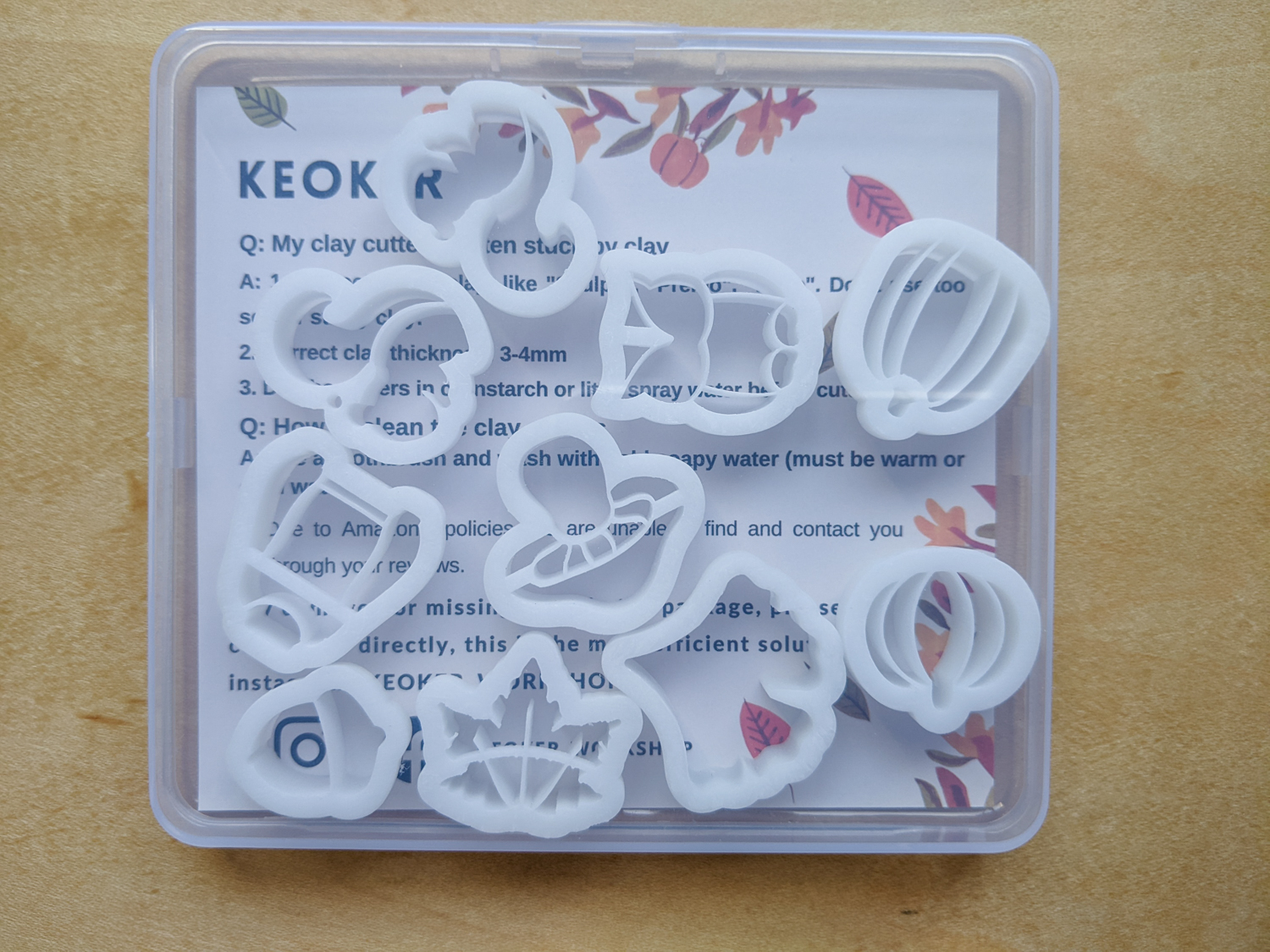 Keoker is fast becoming one of my favourite clay cutter brands. It smashes other imported products out of contention, IMO. And again, this isn’t a sponsored post. I also received another brand of cutter (also an Amazon vendor) for Christmas, and the two brands don’t compare. The other cutters are of low-quality 3D printing that marks the edges of the clay, the imprints only work on the thickest setting on my clay roller, and the cutters crumble away at the top.