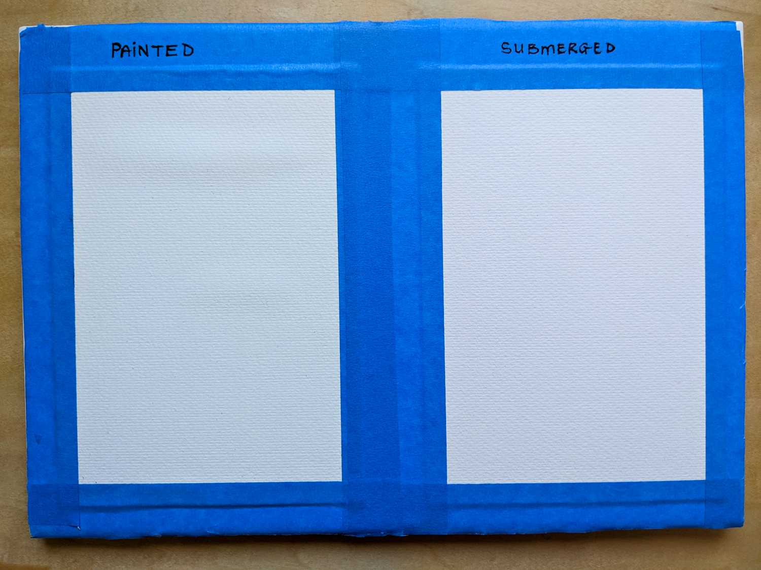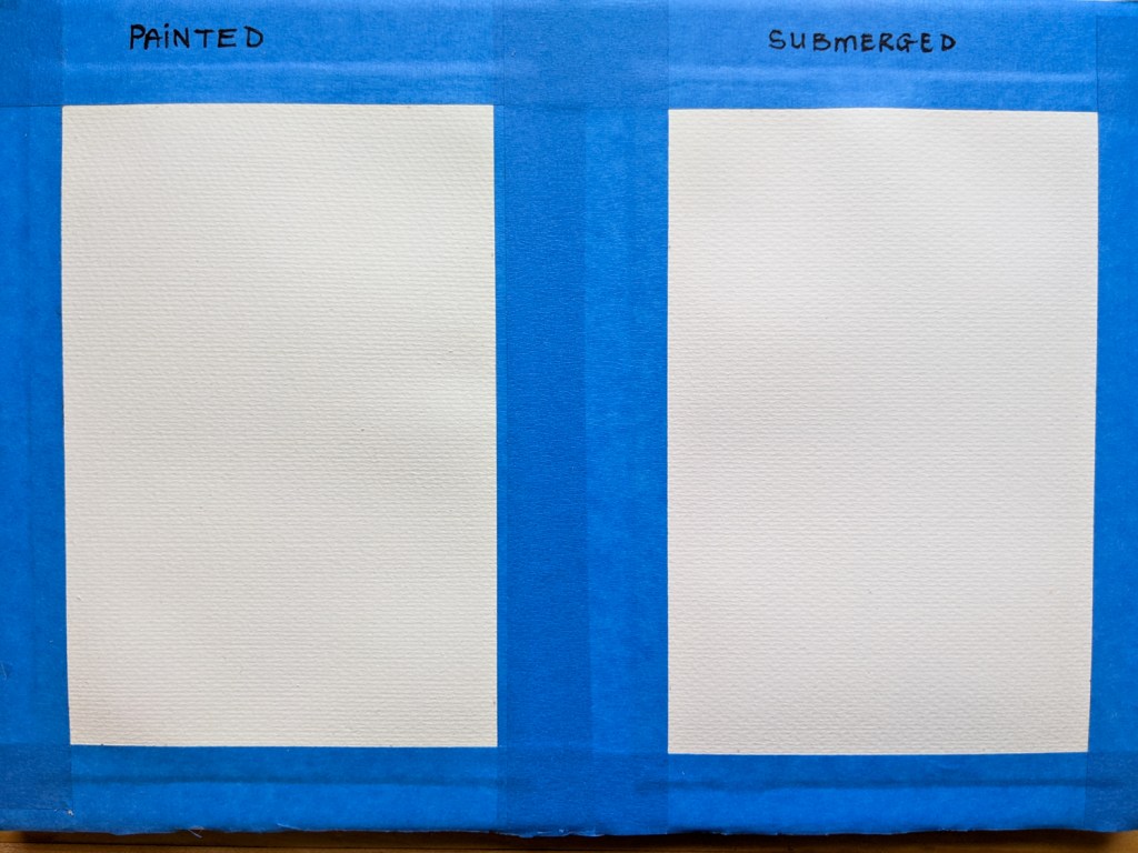 I’ve always preferred to wet paper with a brush, but after this little experiment, I might be a submersion convert for life. The page is much straighter than its counterpart!