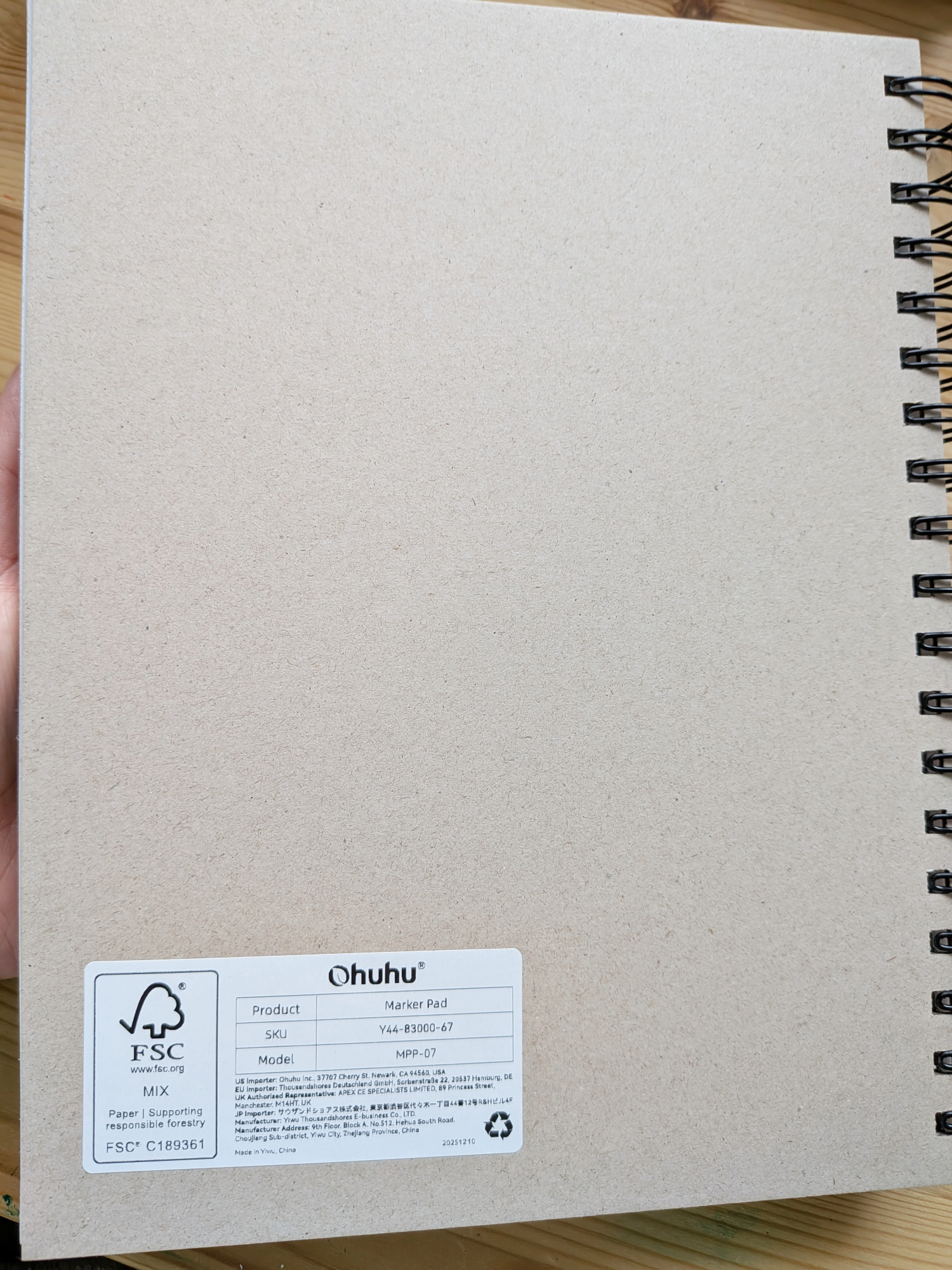 - Spiral-bound with a hard cardboard back cover.