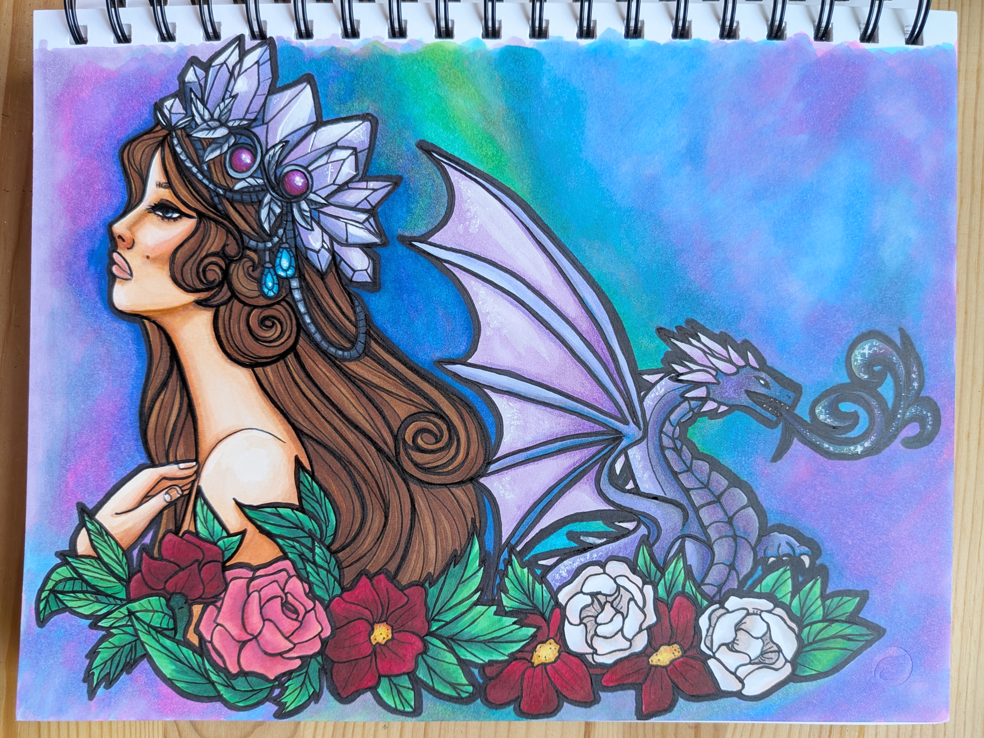Also, the blending is incredible. Even streaky applications smooth out as the ink interacts with the paper, offering those beautiful, seamless blends. Coloured pencils and acrylic markers layer beautifully on the alcohol markers, too.